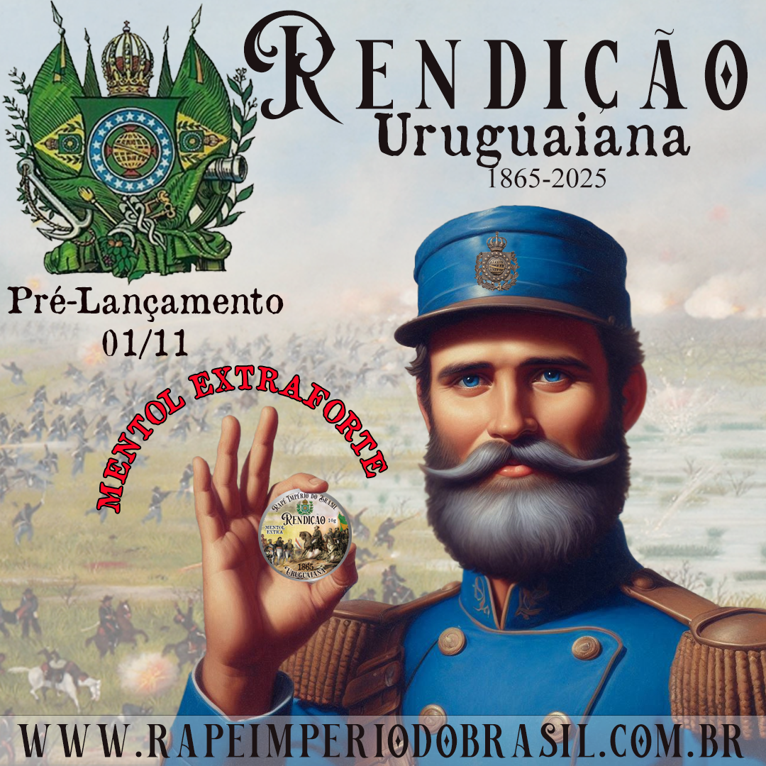 Pra quem é fã de mentolados, prepare-se você terá uma grata surpresa. Depois de muitos anos, vamos voltar a lançar um rapé mentolado extraforte, porém com notas completamente diferentes, com memórias olfativas marcantes a todos os brasileiros. A temática dele, assim como o Humaitá, é a Guerra do Paraguai, mas desta vez o destaque vai para a grande Rendição de Uruguaiana, com o triunfo Brasileiro ocorrido em 1865 e que em 2025 completa 160 anos.