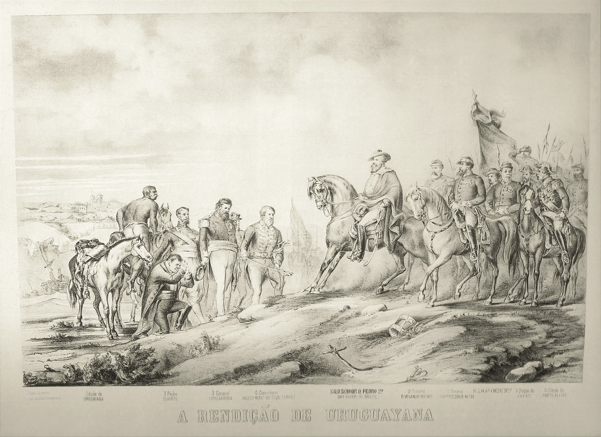 A Batalha do Riachuelo, em 11 de junho 1865, esgotou suprimentos e pessoal paraguaios, que, após sucessivas derrotas, teve suas tropas cercadas em Uruguaiana. Ali, em 18 de setembro, do mesmo ano, o comandante paraguaio, General Antônio de La Cruz Estigarríbia, rende-se. Estavam presentes o Imperador Pedro II e os presidentes Mitre, da Argentina, e Flores, do Uruguai.